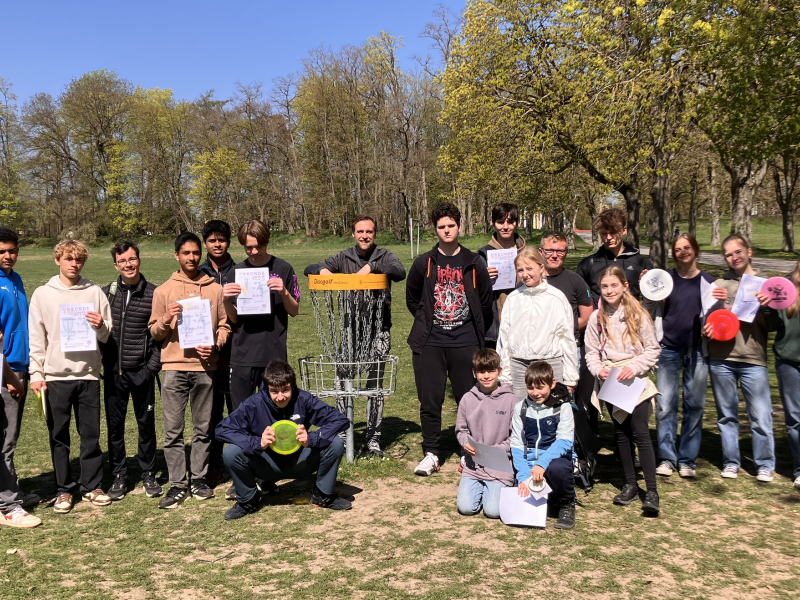 Am Freitag, den 11. April 2025, dem letzten Tag vor den Osterferien, fand das sechste Discgolfschulturnier – wieder gemeinsam mit dem Reuchlin – statt. Es trafen sich dieses Mal 28 Spielerinnen und Spieler im Glacis bei herrlichem Wetter auf unserem gewohnten Kurs mit 10 Bahnen, um die Besten in den Altersklassen U18, U15 und U12 zu ermitteln. Mit dabei dieses Mal auch vier sehr engagierte und talentierte SpielerInnen von unserem Nachwuchsbereich aus der Unterstufe des Katherl.