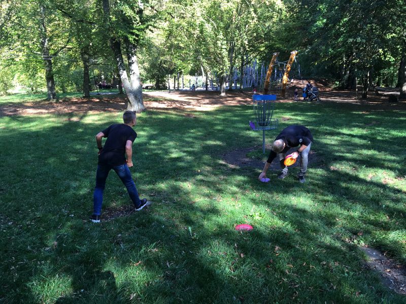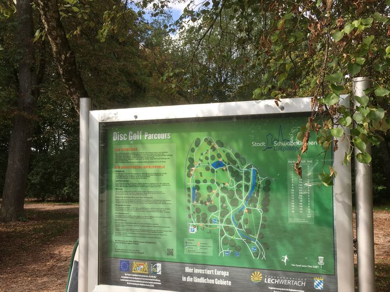 In Schwabmünchen - übrigens auch in einem Luitpoldpark - ist der von uns nächstgelegene festinstallierte große Discgolfkurs. 13 fest installierte Bahnen und fünf Bahnen, die nur zu Turnieren aufgebaut werden sind eine ziemliche Herausforderung auch für fortgeschrittene DiscGolfer.