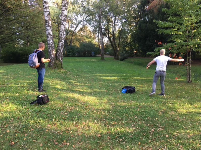 Diesmal recht kurzentschlossen begaben sich die drei abgebrühtesten DiscGolfer des Katherl wieder nach Schwabmünchen. Der Ausflug am 21. Oktober 2018 wurde belohnt durch zwei neue Bestleistungen und dadurch, dass wir unseren einzigen deutschen DiscGolfWeltmeister Michi Kobella trafen, der uns mit drei Freunden auf eine Runde Doubles mitnahm, was leider zu demoralisierendem Anschauungsunterricht ausartete (Nein Spass, die Neun-unter-Par Runde war schon echt beeindruckend!). Währenddessen gab er uns wertvolle TechnikTipps und wir sind motivierter denn je.