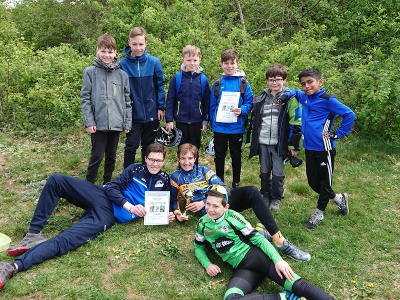 Unsere Jüngsten schlugen sich bei ihrem allerersten Wettkampf mehr als achtbar und konnten sich den 7. Platz sichern. Dies ist umso bemerkenswerter, wenn man bedenkt, dass mit Valentin Kraus aus der 5a der stärkste Fahrer aus der Riege der Fünftklässler bei den ganz Großen (WK II - bis Jahrgang 2002) aushelfen musste und dort als jüngster Teilnehmer einen herausragenden 7. Platz unter knapp 30 Teilnehmern in der Einzelwertung belegte.