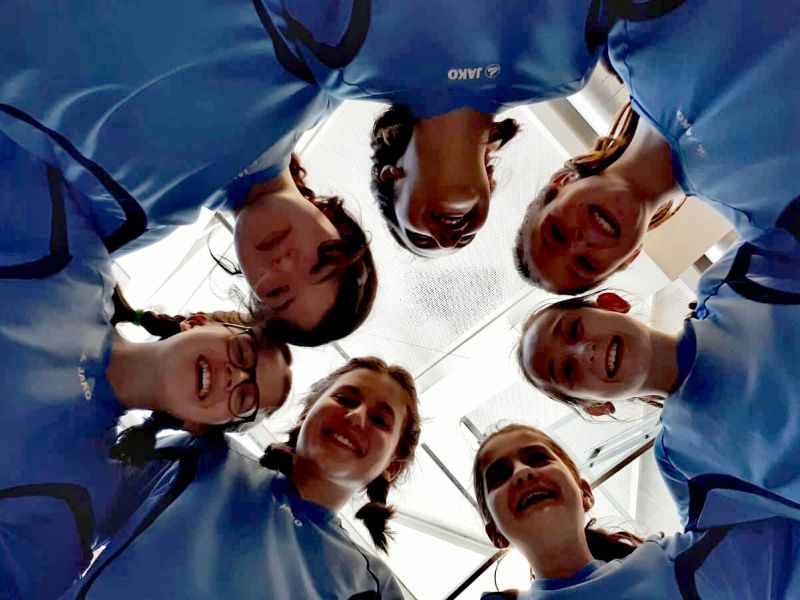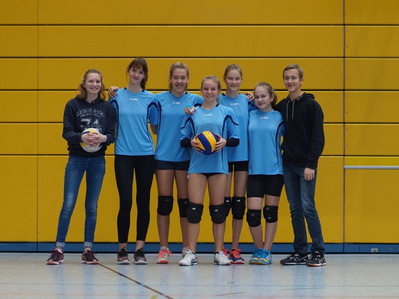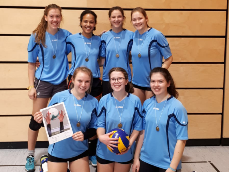 Die Mannschaft (Sandra König 10e, Evalina Jung Q11, Aurelia Workneh 10e, Eva Stelz 9a, Klara Falkenberg Q11, Carina Funk 8 und Nina Wilhelm 9+d) bedankt sich bei unserem engagierten Trainer Niklas Weber (Q11) und den betreuenden Lehrern Herr Kapaun und Frau Hörnig.
