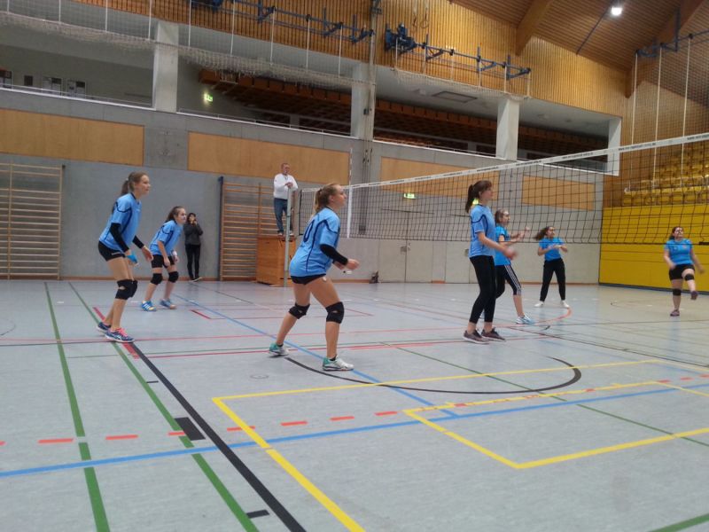 Nachdem das Ingolstädter Team (dieses Mal unterstützt von Sonja Dinkelacker [8c]) nach 2 Stunden Fahrt in Mühldorf angekommen war, wurden auch gleich zwei Gruppen mit jeweils drei Mannschaften gebildet. Das Katherl–Team spielte zuerst gegen die Mädchenrealschülerinnen aus Traunstein, die sie ohne große Schwierigkeiten besiegen konnten. Im entscheidenden Spiel gegen Gilching, freuten sich die Mädchen auf die Herausforderung, da Gilching kein schwacher Gegner ist. Im ersten Satz schienen die Ingolstädterinnen noch nicht ganz wach zu sein und verloren diesen auch. Im zweiten kämpften sie mit noch mehr Motivation für den Sieg. Trotz deutlicher Führung brachen sie dann doch ein und verloren den Satz ganz knapp mit 24 zu 26. Im Spiel um den dritten Platz zeigten die Mädchen gegen Grafing, dass sich das lange Trainieren schließlich doch gelohnt hat. Am Ende reichte es leider nur für Bronze.