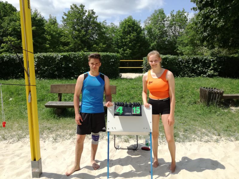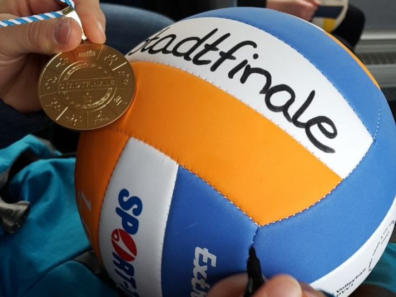 Am 23. Mai fand am Ingolstädter Baggersee bei bestem Wetter das Stadtfinale im Beachvolleyball statt. Neben der Freiherr–von–Ickstatt–Realschule und dem Apian–Gymnasium nahm auch das Katherl mit sieben Schülerinnen und Schülern aus den Jahrgangsstufen 9 – 11 teil. Die Schulen spielten in der „Jeder gegen Jeden”–Turnierform mit jeweils einer Mädchen, einer Jungen– und einer Mixed–Mannschaft gegeneinander. Nach zwei starken Siegen unsererseits gegen die Ickstatt–Realschule, besiegte uns das Apian–Gymnasium in zwei spannenden Mädchen– und Mixed–Matches jeweils knapp im dritten Entscheidungssatz. So gingen wir, trotz des gewonnen Jungenspiels, zwar nicht als Tagessieger aus dem Turnier, können aber mehr als stolz auf einen guten 2. Platz sein!