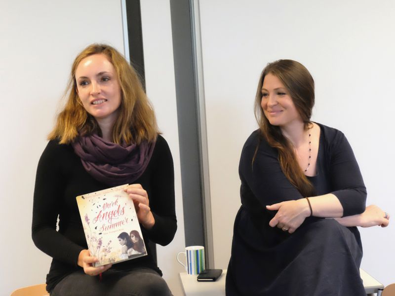 Das zweite Buch, aus dem vorgetragen wurde, entstammt der „Dark Angels“-Reihe, sie schrieb es zusammen mit ihrer Schwester Susanne und es ist im Gegensatz zum „Rotkäppchen“ aus dem Fantasy-Genre. Darin geht es um zwei Schwestern, Dawna und Indie, die zusammen mit ihrer Engel-fanatischen Mutter in ein Landhaus ziehen. „Fantasy schreiben macht viel mehr Spaß, weil man sich weiter ausdehnen kann“, sagt die Autorin dazu. Doch wir sprachen mit unserem Gast nicht nur über die Bücher und das Schreiben, sondern auch ihr Leben interessierte viele von uns. So hat Beate Hanika nach der Schule einige Jahre lang als Model gearbeitet. Dies habe sie allerdings nur gemacht, weil sie nicht wusste, was sie mit ihrem Leben anfangen sollte, erzählte sie uns. Anschließend wechselte sie zum Metier der Fotografin, bis sie 2009 ihr erstes Buch „Rotkäppchen muss weinen“ veröffentlichte und damit gleich für den Deutschen Jugendliteraturpreis nominiert wurde. Seitdem sind noch viele weitere Werke von ihr erschienen, wie zum Beispiel „Erzähl mir von der Liebe“ oder „Nirgendwo in Berlin“. Ans Katharinen-Gymnasium brachte Beate Hanika die Schauspielerin, Dozentin und Moderatorin Meike Fabian mit, die den Part übernahm, die ausgewählten Textauszüge mit ihrem großartigen, professionell geschulten Repertoire ausdrucksstark vorzutragen. Nicht nur ich, sondern auch viele meiner Mitschüler fanden den Vortrag und die Bücher von Beate Teresa Hanika sehr ansprechend und spannend und wollen unbedingt einige ihrer Werke lesen.