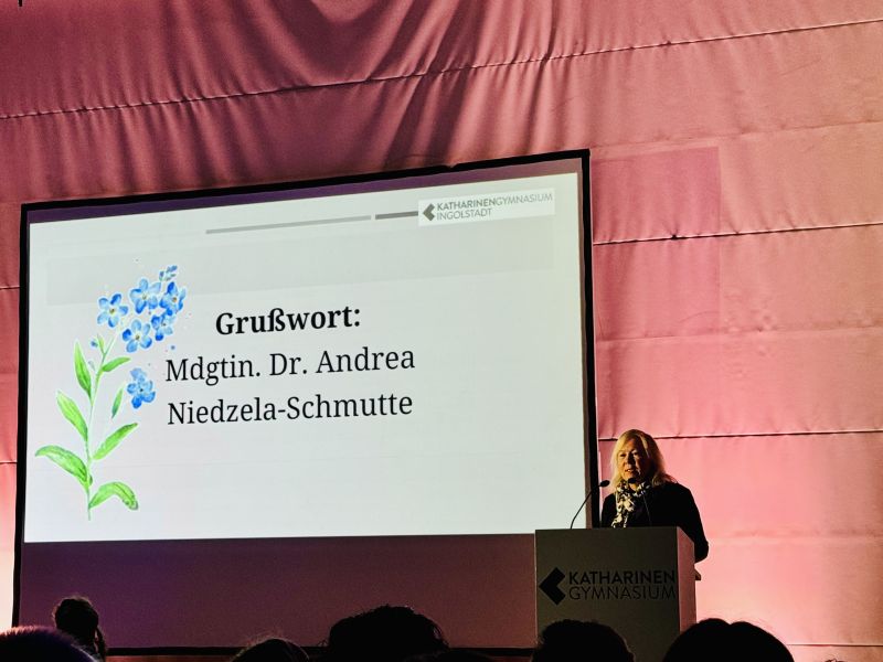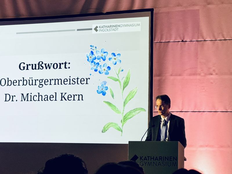 Der Schulleiter, Dr. Matthias Schickel, durfte zahlreiche Gäste aus der Ingolstädter Politik, Gesellschaft, Bildung und Kultur begrüßen, an deren Spitze unser Oberbürgermeister Dr. Michael Kern. Die besten Wüsche der Kultusministerin überbrachte Ministerialdirigentin Dr. Andrea Niedzela-Schmutte.