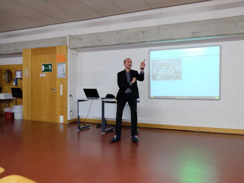 Ein weiteres aktuelles Forschungsprojekt unseres Gastes sind Aspekte bei der finanziellen Unterstützung; speziell geht es um die Eigeninitiative und Anstrengungsbereitschaft eines Hilfeempfängers. Hierbei ist entscheidend, ob die Unterstützung anonym vom Staat kommt oder von einer Person, die dem Unterstützten bekannt ist. Mathematische Modelle gekoppelt mit Experimenten liefern hier wertvolle Ergebnisse. Dem anschaulichen, lebhaften und überaus humorvollen Vortrag vor Schülern der Q11 folgte eine intensive Diskussion. An den vielen Fragen zum Fachlichen sowie zum Wissenschaftsbetrieb in Deutschland und Amerika konnte man erkennen, dass der Funke der Begeisterung übergesprungen war. Der junge, dynamische und äußerst sympathische Professor zeigte in dem zweistündigen Highlight, dass sich im Alltag zahlreiche Anwendungen der Mathematik finden lassen und lieferte den Beweis, dass ein Mathematiker keineswegs ein weltfremder Exot sein muss. Das Berufsziel „Mathematiker” könnte als Folge des Besuchs von Herrn Peter durchaus für den einen oder die andere eine Option sein.