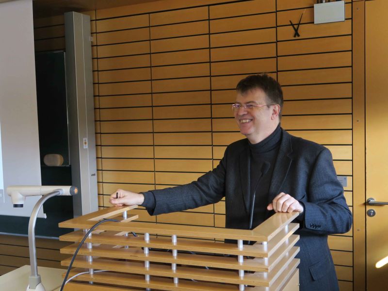 Prof. Dr. Reinhard Weber, Professor für Volkswirtschaftslehre, erläuterte aktuelle Entwicklungen und Herausforderungen der Geldpolitik der EZB. Die Möglichkeit anschließend Fragen zu stellen, wurde von den SchülerInnen rege genutzt.