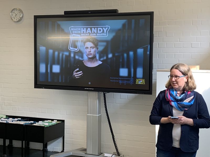 Die vom Bayerischen Staatsministerium der Justiz und vom Bayerischen Staatsministerium für Unterricht und Kultus ins Leben gerufene Aufklärungskampagne "Mach Dein Handy nicht zur Waffe" soll präventiv Jugendliche vor unerlaubten Handlungen schützen und ihr Bewusstsein dafür wecken.