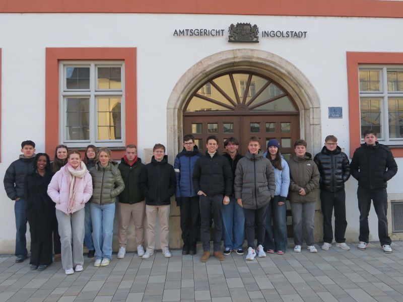 Damit die Lehrplanthemen nicht nur theoretisch im Unterricht erarbeitet werden, besuchte der 2wr1-Kurs der Q13 am 21.01.2026 eine strafrechtliche Hauptverhandlung am Amtsgericht Ingolstadt. Verhandelt wurde vor einem Schöffengericht ein Fall von räuberischem Diebstahl.