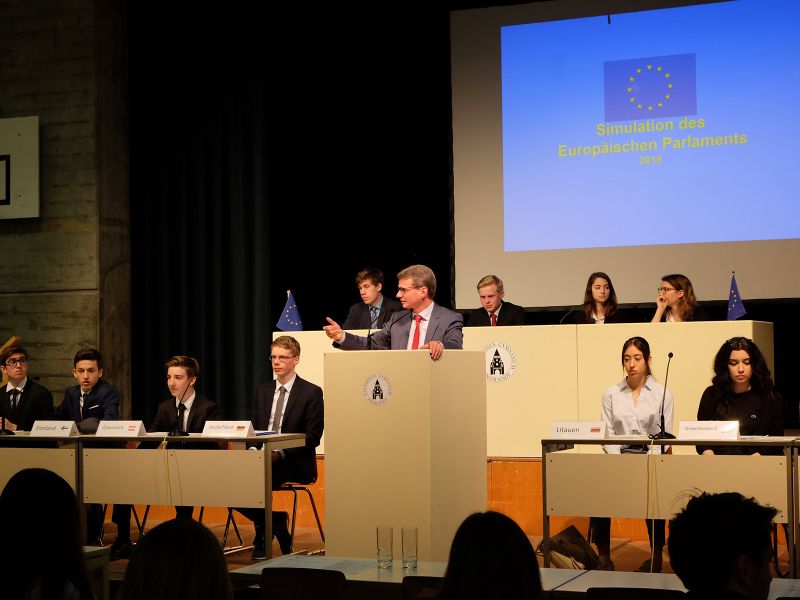 Die Vorbereitung und Durchführung eines zwei oder drei Jahrgangsstufen umfassenden, jährlich wiederholten Großprojekts zur EU-Gesetzgebung soll der wachsenden Bedeutung der Europäischen Union Rechnung tragen und die Entwicklung, Verankerung und Vertiefung europäischer Identität unterstützen. Das jahrgangsstufenübergreifende Projekt „Simulation des EU-Parlaments” erweitert die Vermittlung des Themas „Europäische Union” im Unterricht und ergänzt ebenfalls wichtige kleinere, oft nur sporadisch und mit geringer Schülerzahl durchgeführte Europa-Projekte.