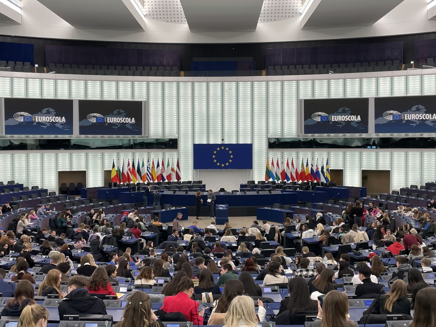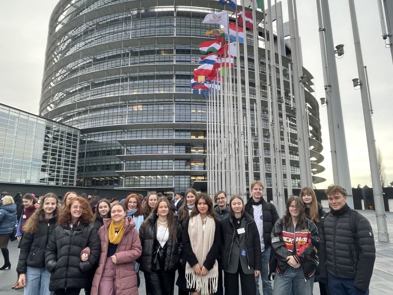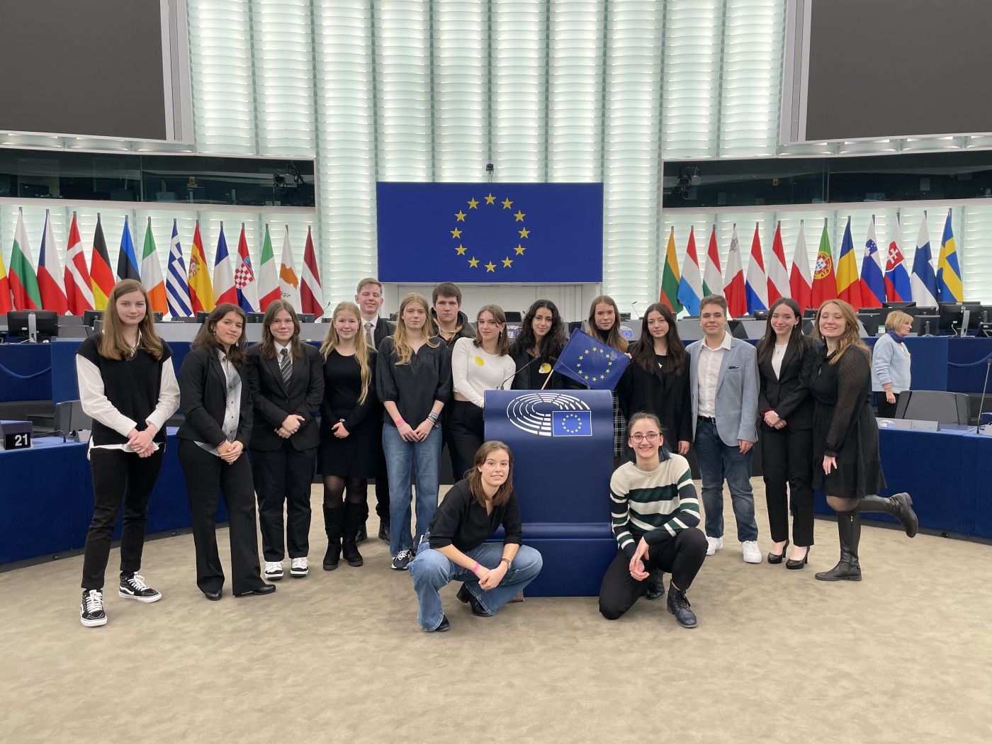 Donnerstag, 21.11.2024, 8:15 Uhr: Unsere Juniorbotschafter und  Seniorbotschafterinnen des europäischen Parlaments auf dem Weg zur Euroscola im EU-Parlament in Straßburg.