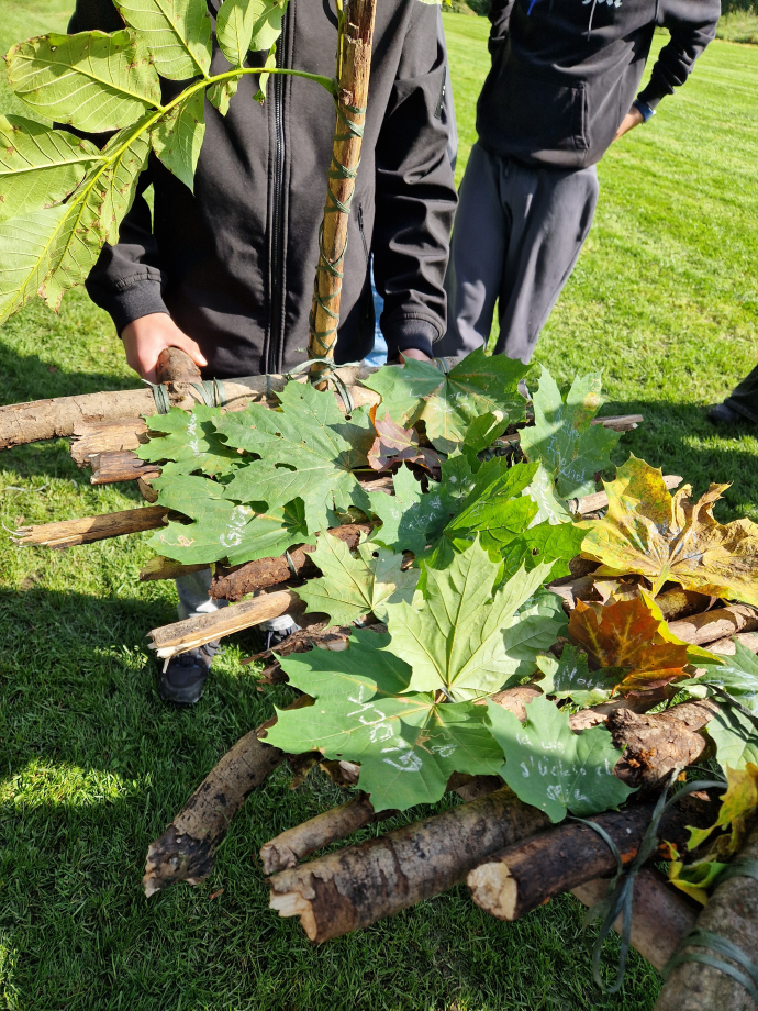 Aus Stöcken und Bastschnüren baute die Klasse ein Floß. Dieses...