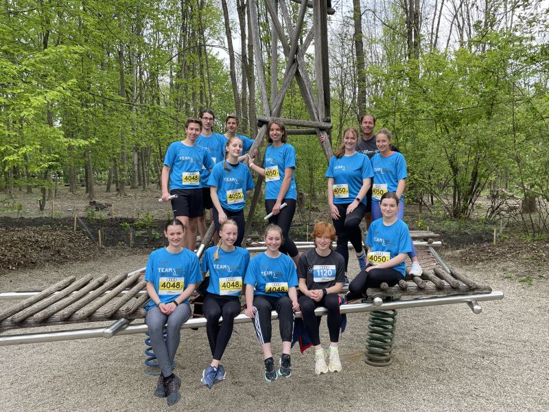 Zudem fanden sich noch 12 schnellentschlossene Schülerinnen und Schüler zu zwei Staffeln zusammen, nämlich Tobias Deiser, Cilia Janker, Jazz Engelbrecht, Luis Kraus, Moritz Dinkelacker (alle 9+c), Nina Sommer Q11 und Christina Hackl, Nele Müller, Luisa Bösl, Luisa Amberger, Anna Schlick, Lydia Reichelt (alle 10f). Unter den Teamnamen „The running gag“ und „2 fast 4 U“ konnten sie im Rahmen des hervorragend organisierten, aufregenden Events ihre Leistung zeigen, sich von Tausenden anfeuern lassen und im Ziel zusammen feiern.