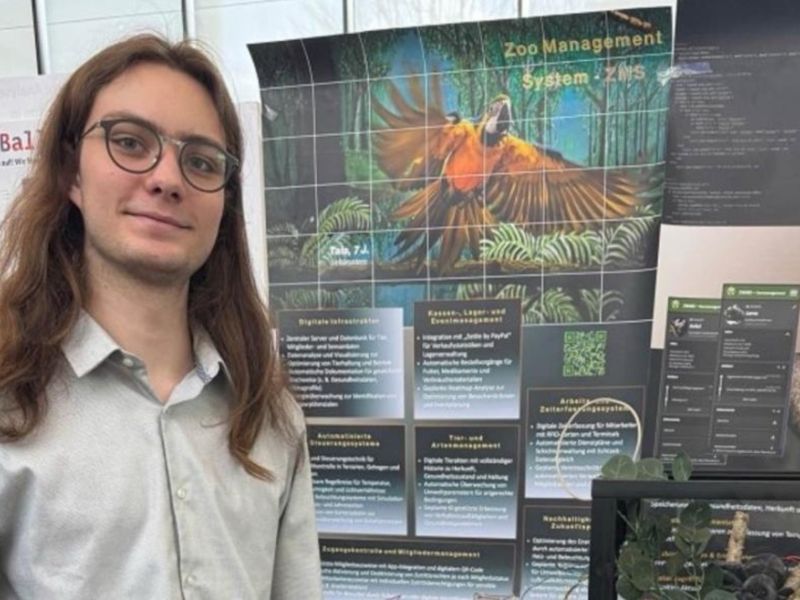 Großartiger Erfolg für Vincent Engelbrecht beim Bundesfinale des Wettbewerbs „Jugend forscht“ in Hamburg. Der 19jährige Katherl-Schüler siegte in der Sparte Arbeitswelt. Er hatte für den Zoo Wasserstern eine Software programmiert, mit der sich alle zentralen Prozesse der Verwaltung eines Zoos in einer App darstellen und steuern lassen.