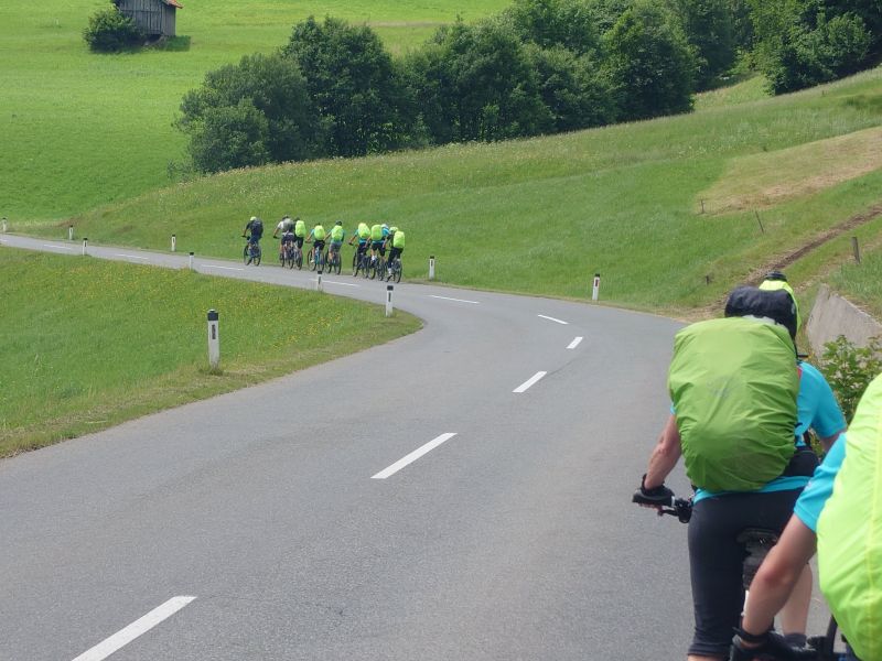 Weiter führte unsere Reise über die Piller Höhe, ein Aussichtspunkt, der einen atemberaubenden Blick über das Inntal für uns bereit hielt. Wir wollen nicht unterschlagen, dass wir uns dieses Panorama mit einer ca. 1000 hm Bergetappe hart erarbeiten mussten.