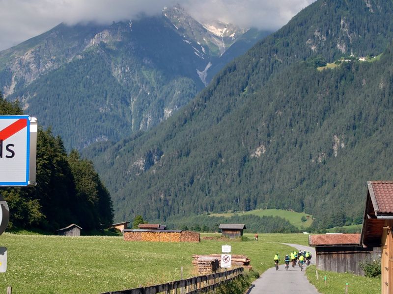 Da wir allerdings noch 55 km und 1000 hm vor uns hatten, verloren wir keine Zeit und erreichten bald den Grenzübergang Martina. Nach einem 5 minütigen Aufenthalt in der Schweiz radelten wir anschließend die Norberthöhe zurück nach Österreich.