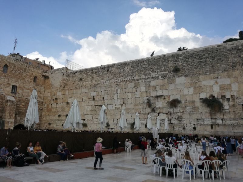 Für viele von uns ging es zweimal nach Tel Aviv. Am Tag des ereignisreicheren Besuches der Weltstadt lernten wir während einem vier-Kilometer-Spaziergang Hebräisch, sahen die Skyline von Blitzen umringt und rundeten ihn mit Lazertag ab. In den letzten Tagen befassten wir uns intensiver mit Jerusalem. Wir lernten die Stadt als ein Zentrum der drei Weltreligionen kennen und besichtigten die Altstadt mit ihren religiösen Stätten, mitunter die Klagemauer. Besonders emotional war für uns alle der Besuch des Yad Vashem, der Gedenkstätte der Shoa. Hier wurde uns von einer 92-jährigen ungarischen Holocaustüberlebenden in fließendem Deutsch von ihren grausamen Erfahrungen in Auschwitz – Birkenau erzählt. Nach dem Vortrag nahm sie sich die Zeit, um mit manchen von uns noch genauer über einzelne Fragen zu reden, wünschte uns mit einem Kuss auf die Wange einen schönen Tag, und wir wurden weiter zum Museumsteil der Gedenkstätte geführt. Bevor wir uns am letzten Tag zu dem großen Markt der Altstadt aufmachten, haben wir die noch die palästinensische Kultur bei einem Besuch in Bethlehem kennengelernt.