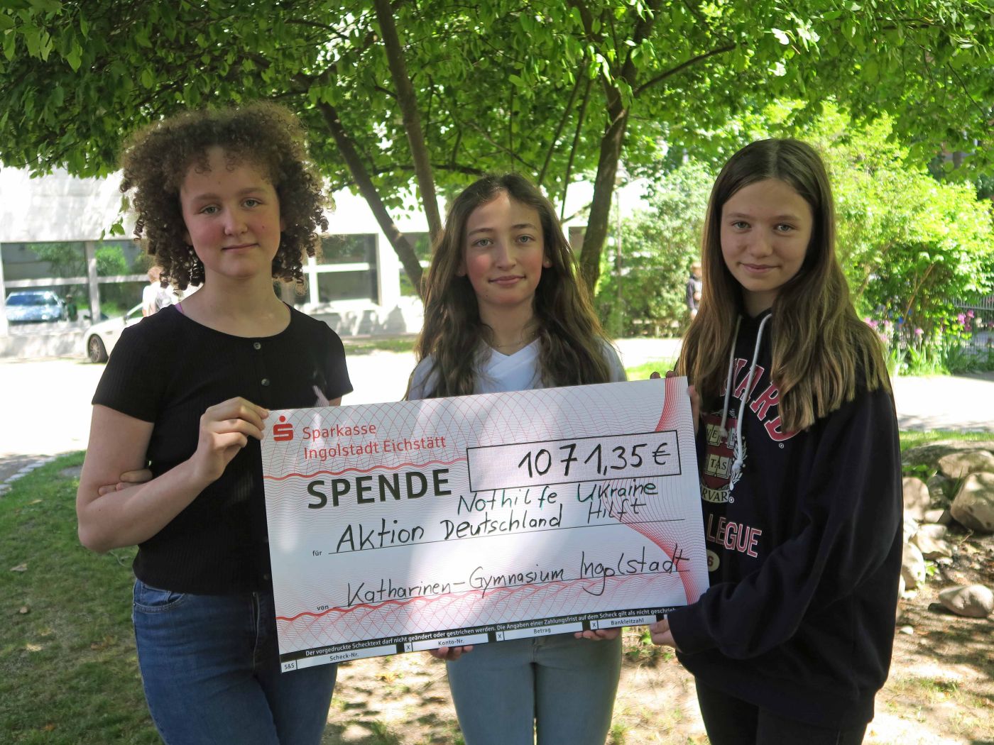 Allein mit diesem Wissen mussten wir einfach etwas tun, um den Menschen in der Ukraine zu helfen. Wir organisierten eine schulweite Tombola und sammelten viele Gutscheine (u.a. Boulderhalle, Trampolinhalle, Manchinger Hof, Golfclub, Eintrittskarten fürs Heimspiel der Schanzer, …) sowie Sachspenden (u.a. Trikot des ERC, Schal und Cappy von den Schanzern, …). Hier findet sich die Liste der Sponsoren, bei denen wir uns ganz herzlich bedanken möchten. Der Loseverkauf war ein voller Erfolg und so kam eine beachtliche Summe zusammen, die an „Aktion Deutschland hilft“ zu Gunsten der Ukraine gespendet wurde.