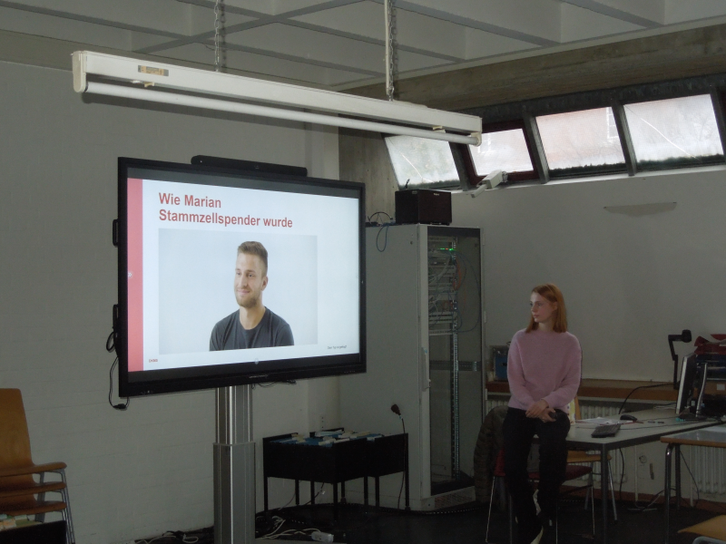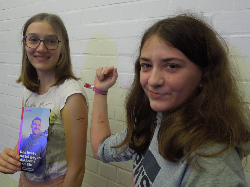 Ziel der Aktion war es also, neue Mitglieder für die Datenbank zu gewinnen. Deutlich über die Hälfte der anwesenden Schülerinnen und Schüler nahmen das Angebot sofort wahr, registrierten sich, meist über das Online-System, und stellten Zellmaterial aus der Wangeninnenseite zur Typisierung zur Verfügung. Alles in allem also ein voller Erfolg im Kampf gegen Blutkrebs.